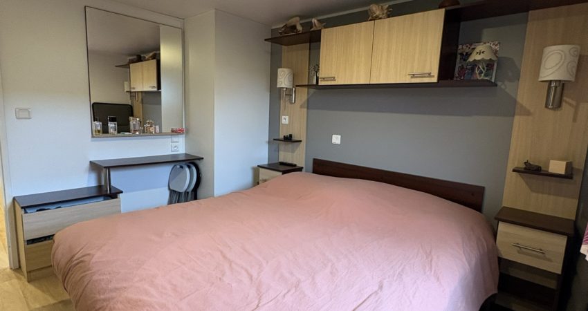 La chambre parentale est particulièrement grande: 8,3 m² avec 2 lits de de 80*190 (qui peuvent être remis dans la chambre enfants), table de nuit, coiffeuse, vrai dressing accolé et