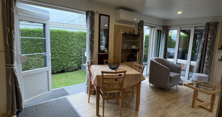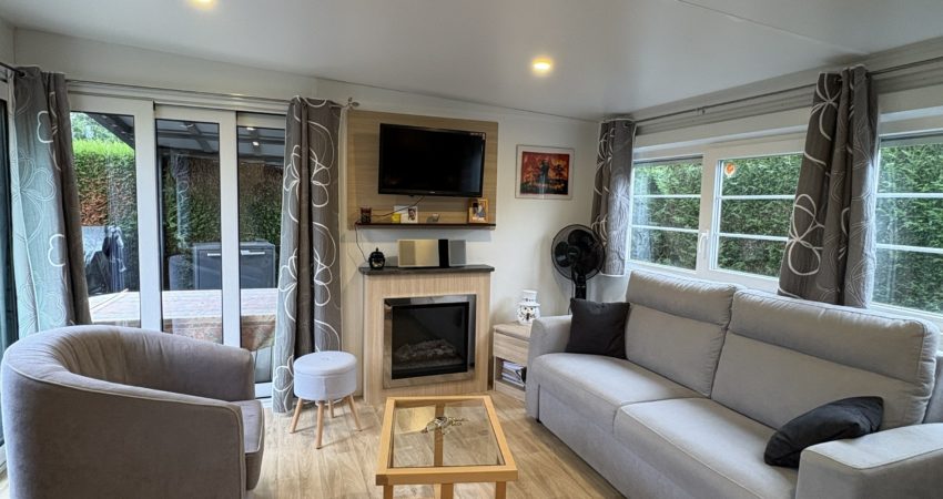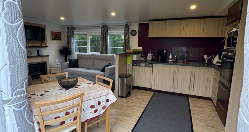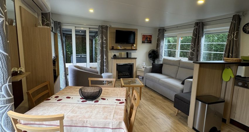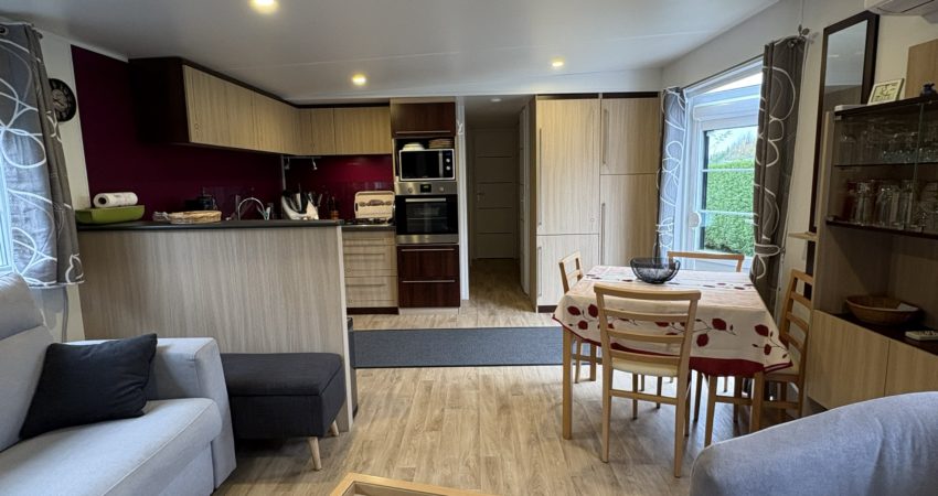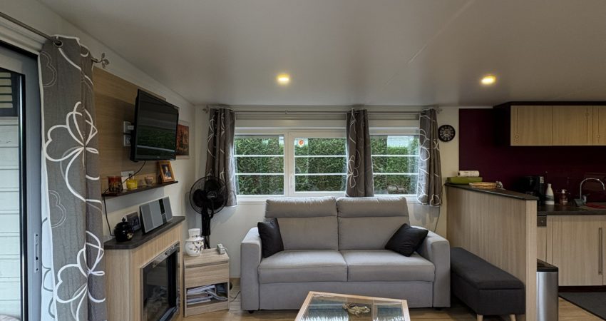 Doté d’un grand salon avec canapé convertible de 2024, les 2 baies coulissantes donnent accès à la terrasse pour profiter d’une grande luminosité