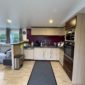 Cuisine toute équipée : évier, plaque cuisson 4 feux gaz, hotte aspirante à extraction extérieure, colonne réfrigérateur-congélateur, four électrique encastré, four micro-ondes, lave-vaisselle, nombreux rangements.