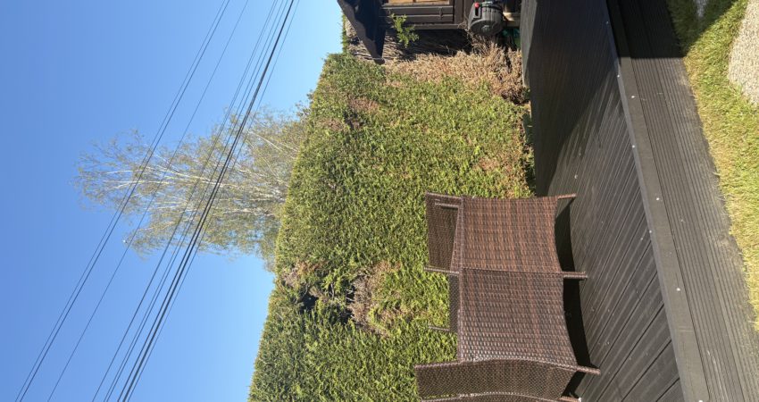 A l’extérieur, il y a un grand cabanon de jardin et une 2ème terrasse non couverte avec salon de jardin.